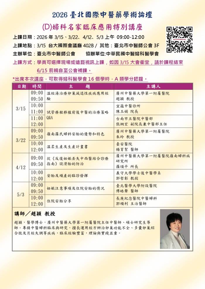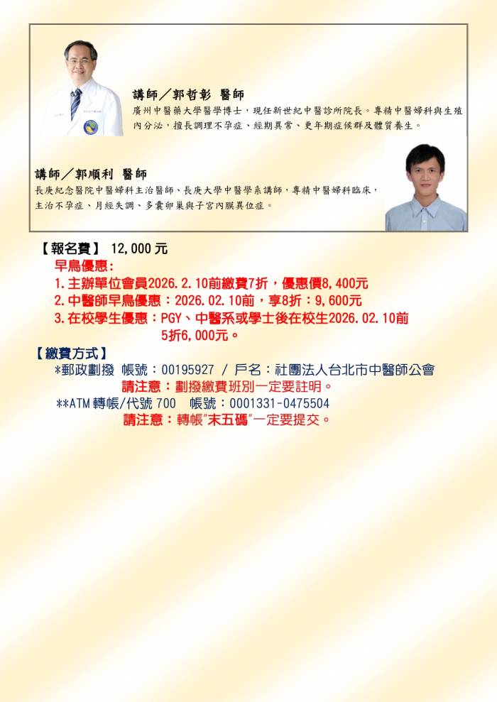 | 台北市中医师公会 官网:http://www.tpcma.org.tw 地址:台北市中正区青岛西路11号3楼 E-mail:tp.cma@msa.hinet.net 电话:(02)2314-3456(代表号) 传真:(02)2314-8181 |