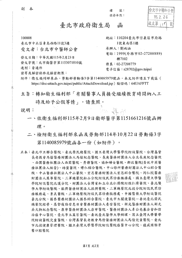 | 台北市中医师公会 官网:http://www.tpcma.org.tw 地址:台北市中正区青岛西路11号3楼 E-mail:tp.cma@msa.hinet.net 电话:(02)2314-3456(代表号) 传真:(02)2314-8181 |