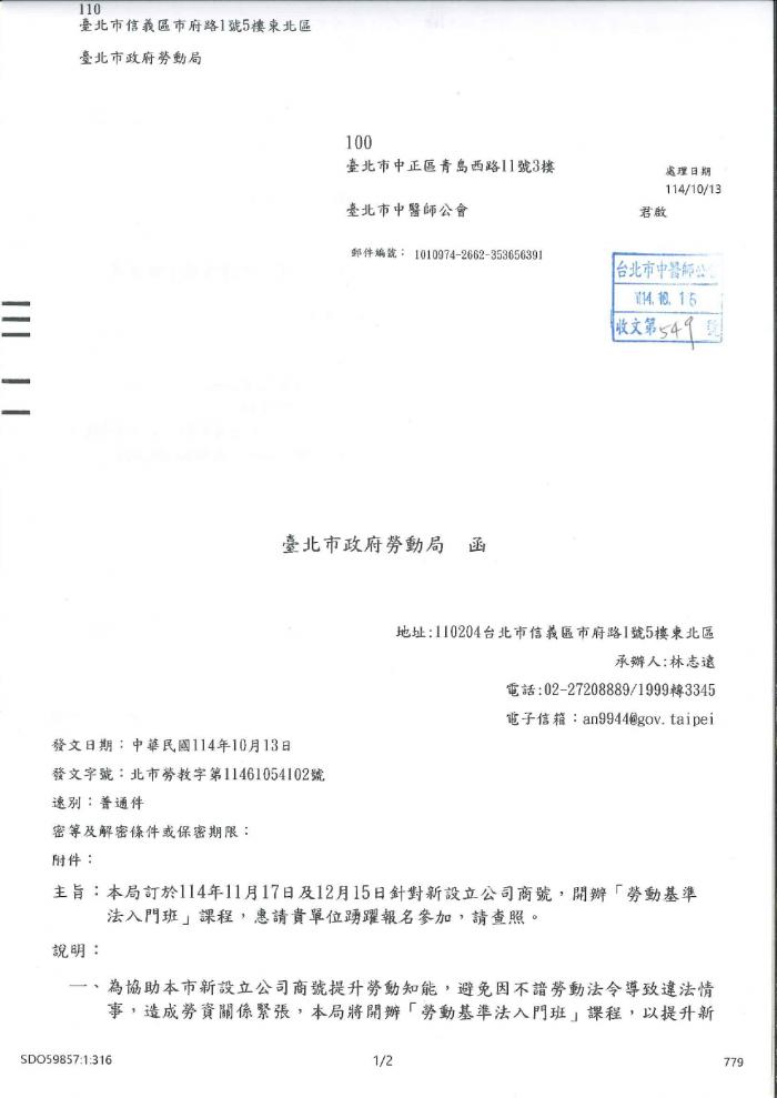 | 台北市中医师公会 官网:http://www.tpcma.org.tw 地址:台北市中正区青岛西路11号3楼 E-mail:tp.cma@msa.hinet.net 电话:(02)2314-3456(代表号) 传真:(02)2314-8181 |