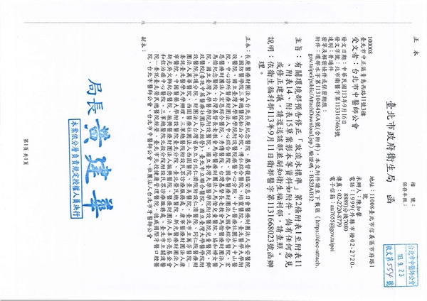 | 台北市中医师公会 官网:http://www.tpcma.org.tw 地址:台北市中正区青岛西路11号3楼 E-mail:tp.cma@msa.hinet.net 电话:(02)2314-3456(代表号) 传真:(02)2314-8181 |