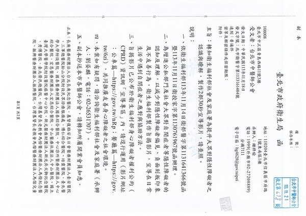 | 台北市中医师公会 官网:http://www.tpcma.org.tw 地址:台北市中正区青岛西路11号3楼 E-mail:tp.cma@msa.hinet.net 电话:(02)2314-3456(代表号) 传真:(02)2314-8181 |