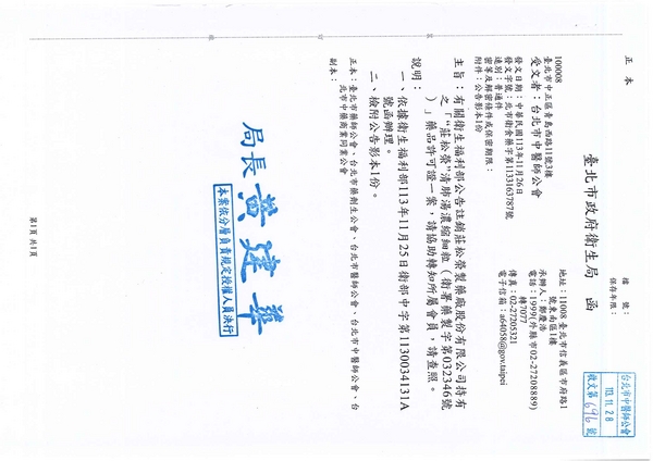 | 台北市中医师公会 官网:http://www.tpcma.org.tw 地址:台北市中正区青岛西路11号3楼 E-mail:tp.cma@msa.hinet.net 电话:(02)2314-3456(代表号) 传真:(02)2314-8181 |