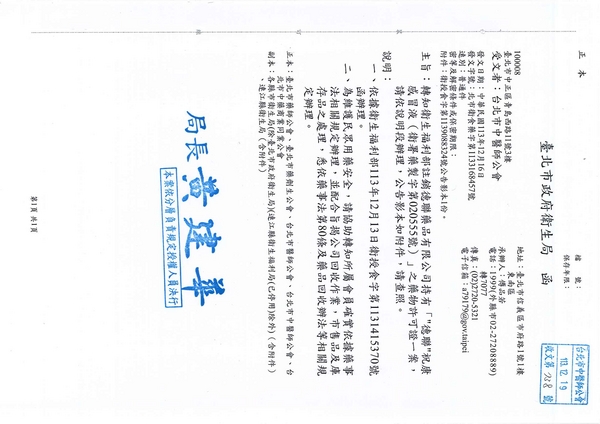 | 台北市中医师公会 官网:http://www.tpcma.org.tw 地址:台北市中正区青岛西路11号3楼 E-mail:tp.cma@msa.hinet.net 电话:(02)2314-3456(代表号) 传真:(02)2314-8181 |
