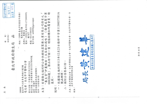 | 台北市中医师公会 官网:http://www.tpcma.org.tw 地址:台北市中正区青岛西路11号3楼 E-mail:tp.cma@msa.hinet.net 电话:(02)2314-3456(代表号) 传真:(02)2314-8181 |