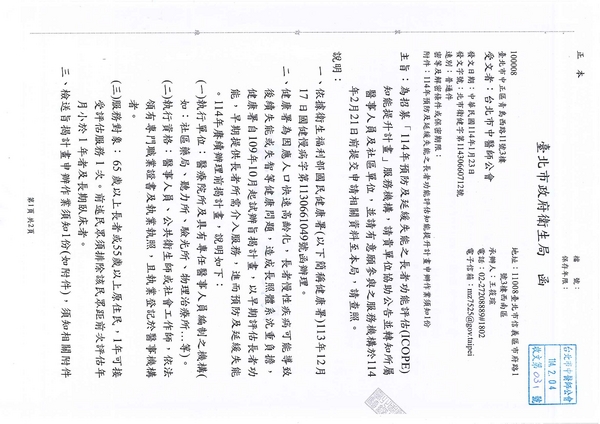 | 台北市中医师公会 官网:http://www.tpcma.org.tw 地址:台北市中正区青岛西路11号3楼 E-mail:tp.cma@msa.hinet.net 电话:(02)2314-3456(代表号) 传真:(02)2314-8181 |