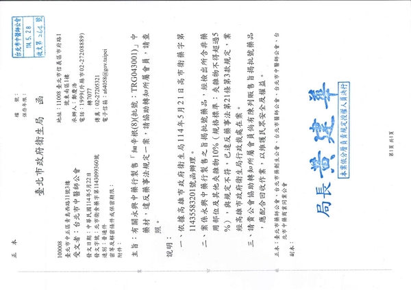 | 台北市中医师公会 官网:http://www.tpcma.org.tw 地址:台北市中正区青岛西路11号3楼 E-mail:tp.cma@msa.hinet.net 电话:(02)2314-3456(代表号) 传真:(02)2314-8181 |