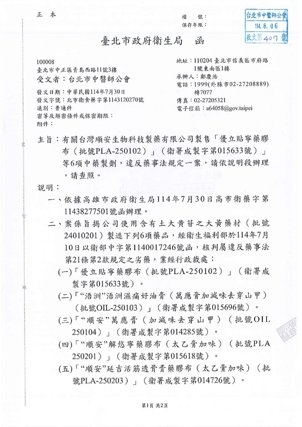 | 台北市中医师公会 官网:http://www.tpcma.org.tw 地址:台北市中正区青岛西路11号3楼 E-mail:tp.cma@msa.hinet.net 电话:(02)2314-3456(代表号) 传真:(02)2314-8181 |