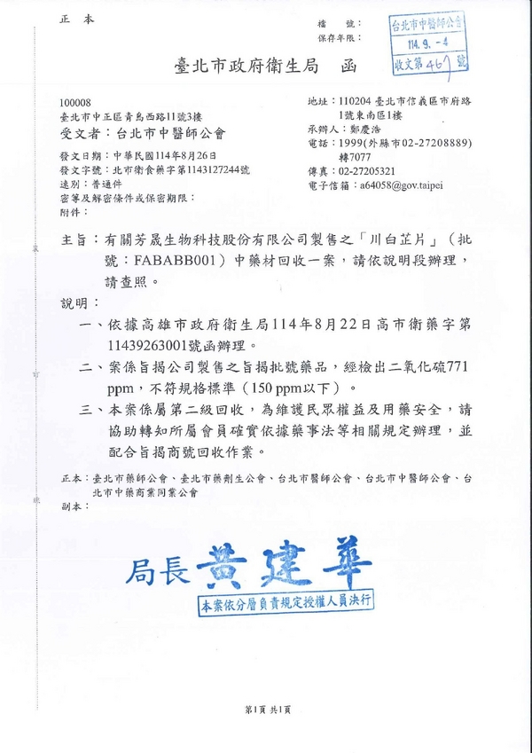| 台北市中医师公会 官网:http://www.tpcma.org.tw 地址:台北市中正区青岛西路11号3楼 E-mail:tp.cma@msa.hinet.net 电话:(02)2314-3456(代表号) 传真:(02)2314-8181 |