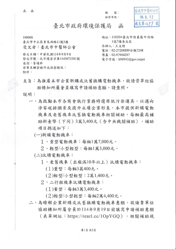 | 台北市中医师公会 官网:http://www.tpcma.org.tw 地址:台北市中正区青岛西路11号3楼 E-mail:tp.cma@msa.hinet.net 电话:(02)2314-3456(代表号) 传真:(02)2314-8181 |