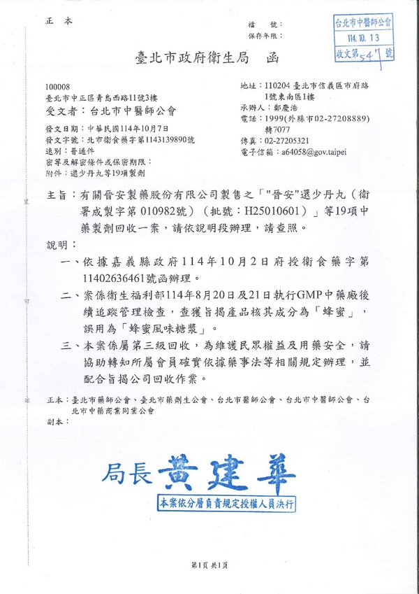 | 台北市中医师公会 官网:http://www.tpcma.org.tw 地址:台北市中正区青岛西路11号3楼 E-mail:tp.cma@msa.hinet.net 电话:(02)2314-3456(代表号) 传真:(02)2314-8181 |