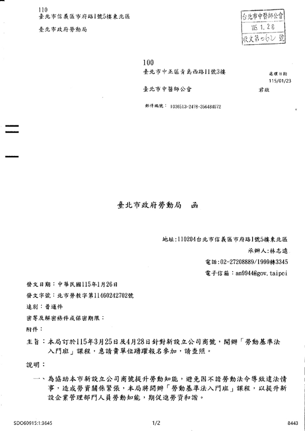 | 台北市中医师公会 官网:http://www.tpcma.org.tw 地址:台北市中正区青岛西路11号3楼 E-mail:tp.cma@msa.hinet.net 电话:(02)2314-3456(代表号) 传真:(02)2314-8181 |